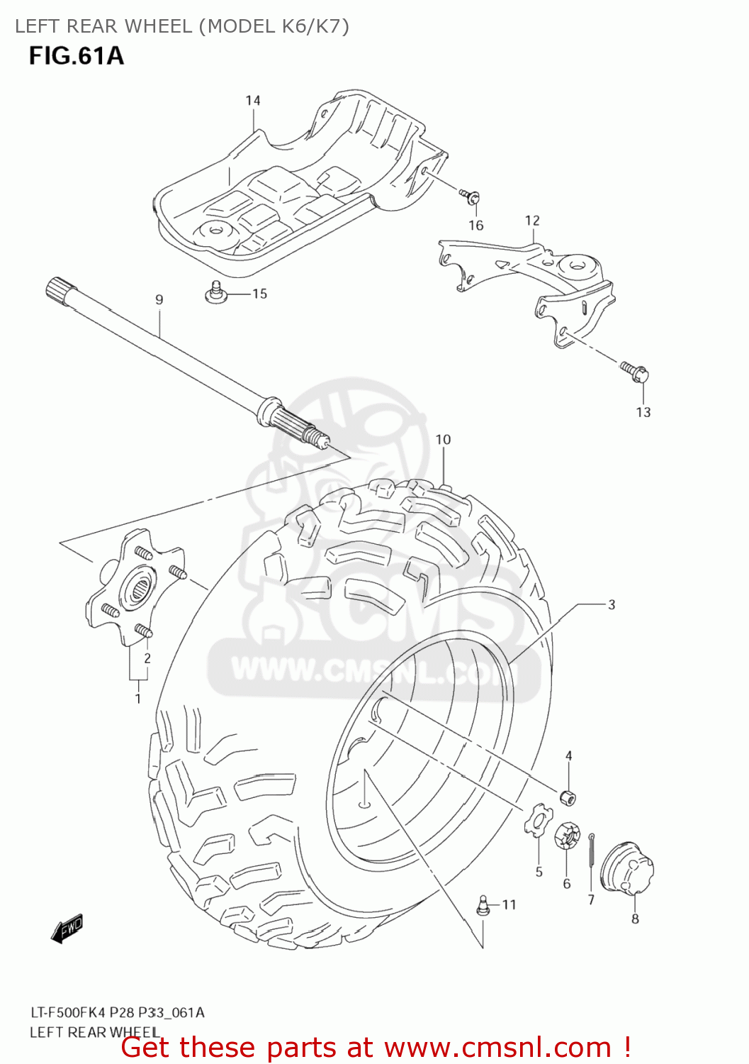 Suzuki Lt F500f Vinson 4wd 2004 K4 Usa E03 Ltf500f Lt F500f Left Rear Wheel Model K6 K7 Buy Original Left Rear Wheel Model K6 K7 Spares Online